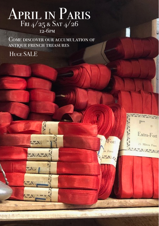 Come discover our french antiques accumulated throughout the last thirty years. Join us Friday April 25th & Saturday April 26th 12-6pm