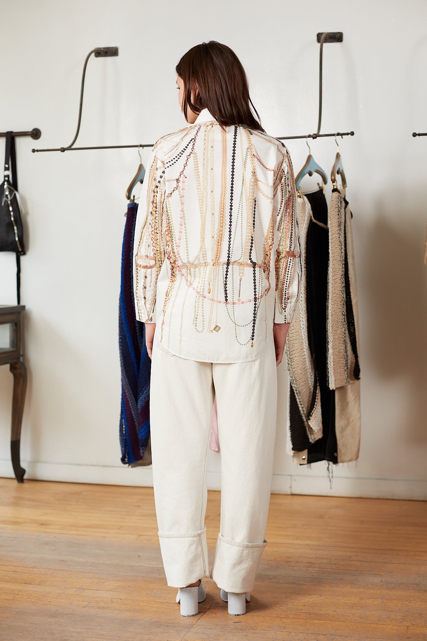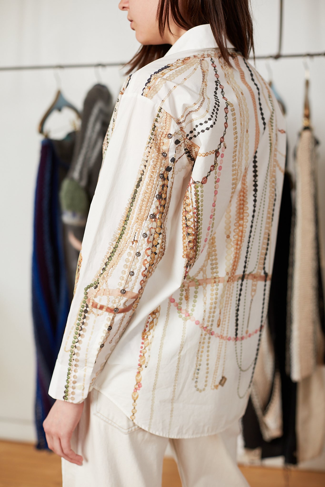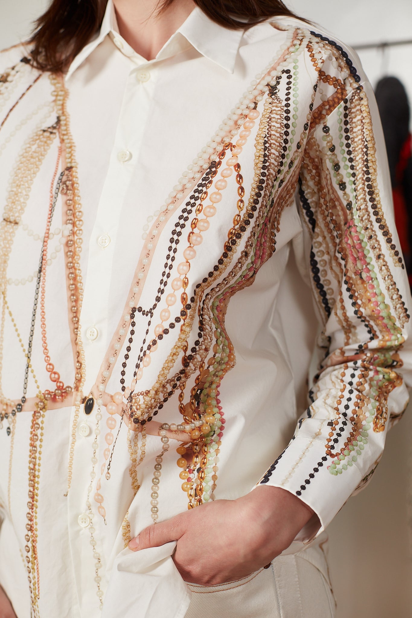 This Long Sleeved Shirt pulls inspiration from the Maison Margiela archives, specifically the SS '06 collection which featured a pearl vest reminiscent of the graphic print of this shirt.